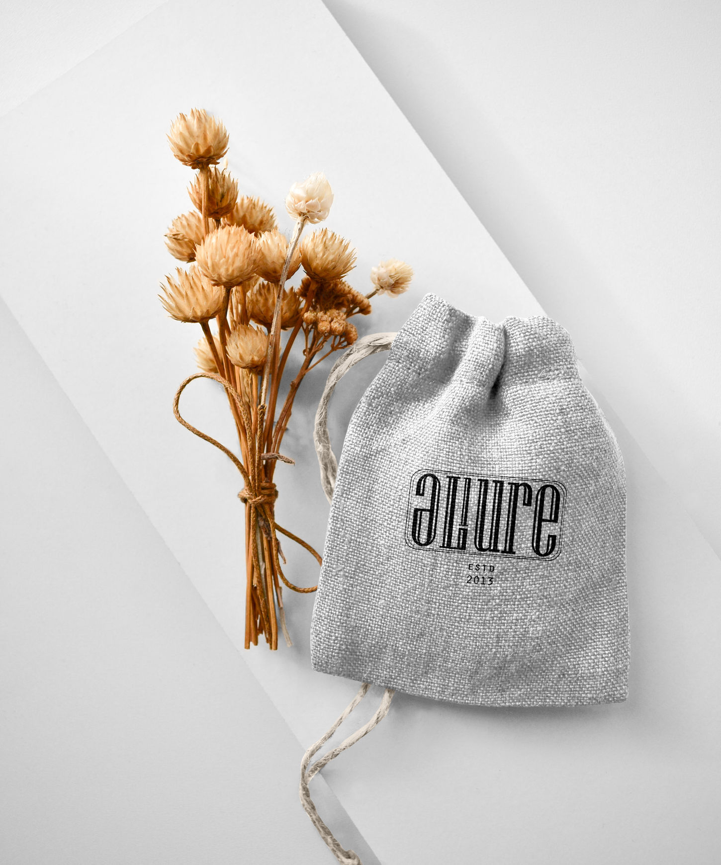 Symbolizing boldness and diversity are the letters "a" and "e" in the logo which are mirrored. Furthermore, there is a feature of the letter "L" in upper as well as lowercase. This is to show the comprehensive collection offered at Allure.
